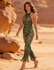 Product Name Green Sexy Jacquard Halter Neck Bodysuit
