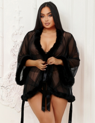Plus Size Pajamas(54)Purple Sexy Lace Ruffled Sus...