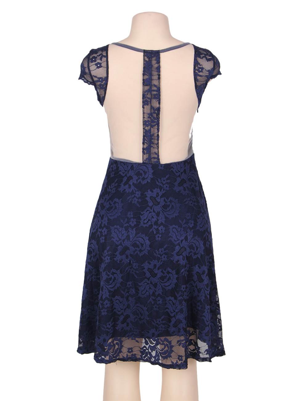 Product Name Lace Round Neck Elegant Blue Bodycon Dress