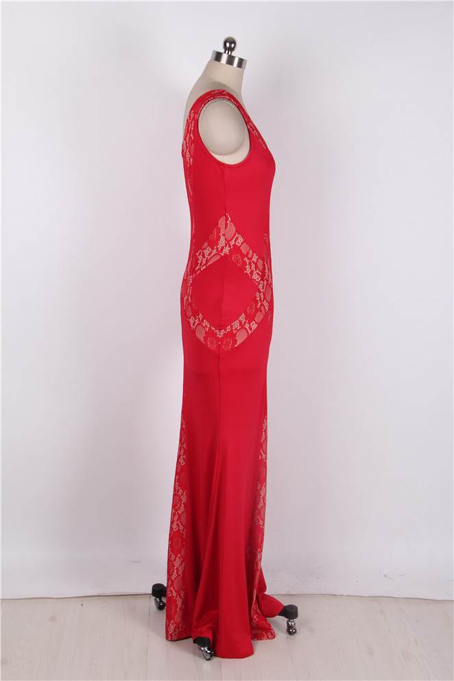 Product Name Plus Size Red Lace Panel V-Neck Maxi Dress