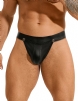 Crafted from PU leather fabric for a stylish, sleek look. Features a front U-shaped pouch design for a sexy, comfortable fit. Triangular cut offers simplicity and comfort. The crotch features an openable snap closure for convenient access and a unique touch. Dual thong design provides a comfortable, butt-lifting effect.