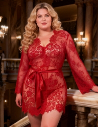 Home > > Red Eyelash Lace Sleepwear Gown With Thong
