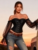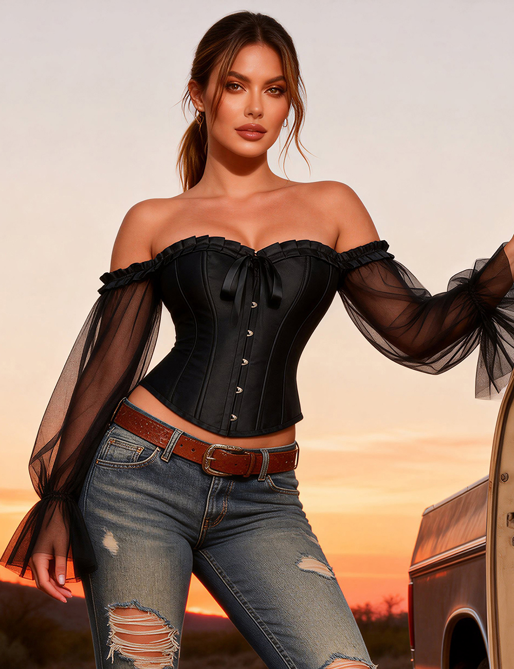 One of the main selling points of this corset is the high quality polyester material, which is not only durable but also resistant to wrinkles and fraying. At the same time, the one-shoulder long-sleeve style design highlights the shoulder and neck lines, and the sleeves are made of soft and breathable mesh fabric, with a lantern sleeve style that is hazy, provocative, and low-key luxurious. The top and bottom of the corset are spliced with ribbons to form a wooden ear design, and the V-neck neckline is also spliced with ribbons, making it vintage atmospheric and sophisticated. This makes the A3614 a great investment for anyone looking for a corset that can be worn for a long time. The 12 steel bones that hold the waist in place have also been carefully designed to ensure that pressure is evenly distributed throughout the body.