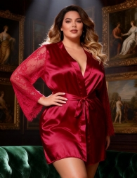 Home > > Eyelash Lace Sleepwear Silk Long Sleeves Nightdress with G String