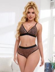 Product Name Sexy Leopard Print Mesh Bra Set