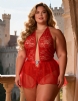 Home > Plus Size Teddy Supplier > Black Sexy Lace Mesh Halter Neck Open Crotch Teddy Lingerie 2PCS Set