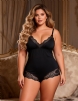 Home > Plus Size Pajamas Supplier > Blue Sexy Modal Lace Crotchless Bodysuit