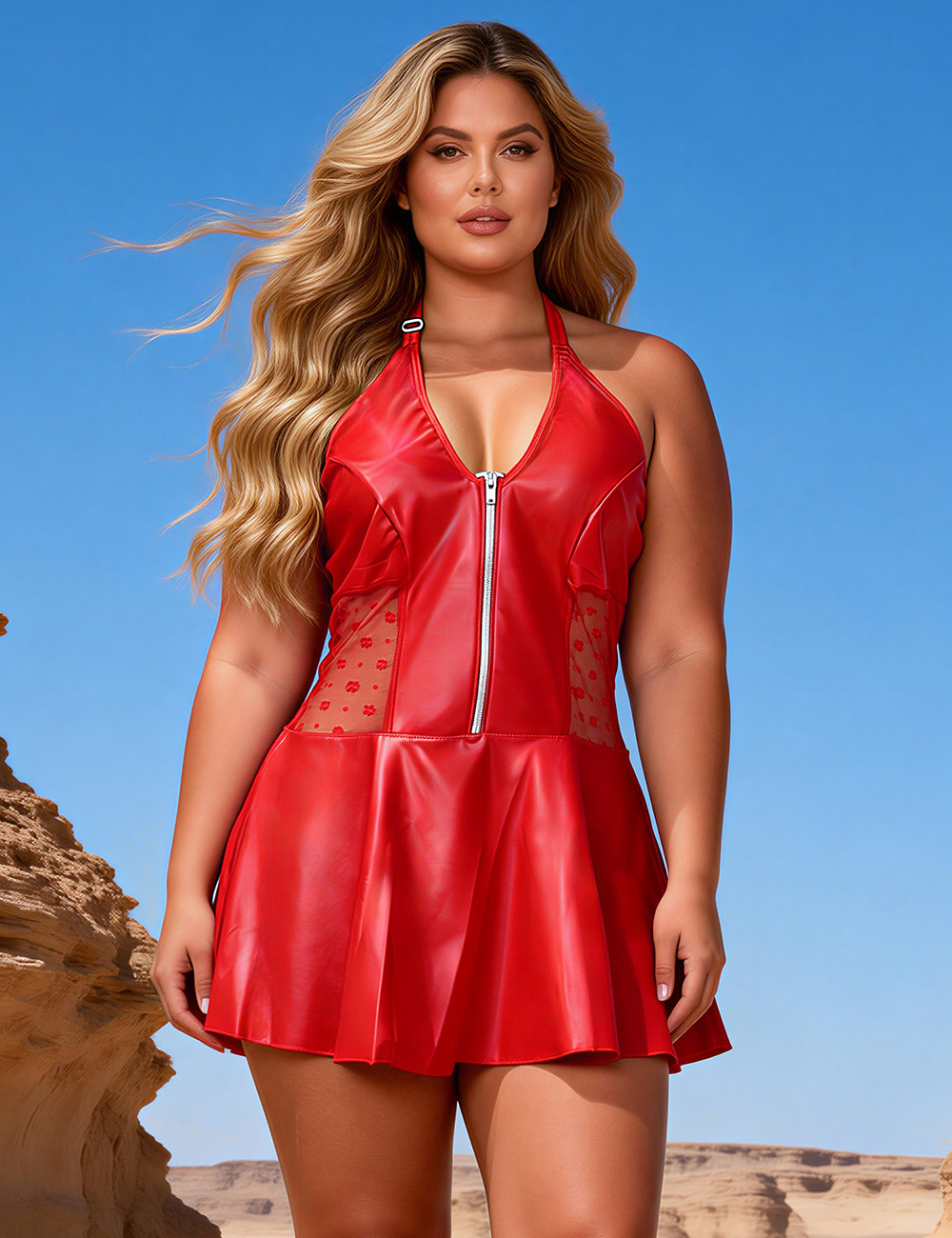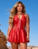 Home > Wholesale Plus Size Lingerie > Red PU Leather Lace Sexy Halter Lingerie With Garter Belt