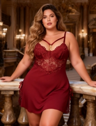Home > Plus Size Pajamas Supplier > Burgundy Sexy Modal Lace Slit Nightdress