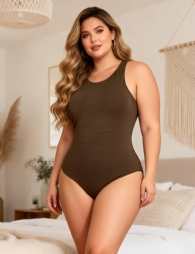 Home > Plus Size Teddy Supplier > Brown Simple Sleeveless Open Crotch Bodysuit
