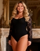 Home > Wholesale Plus Size Lingerie > Black Long Sleeve Openable Crotch Mesh Bodysuit