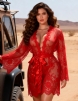 Home > > Red Sleepwear With Thong Sexy Long Sleeve Eyelash Lace Short